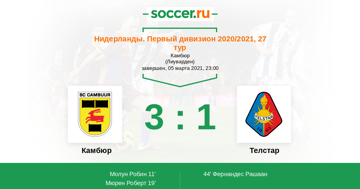 44' (2:1) Фернандес Рашаан (7) (Эль-Яакуби Редуан (5))