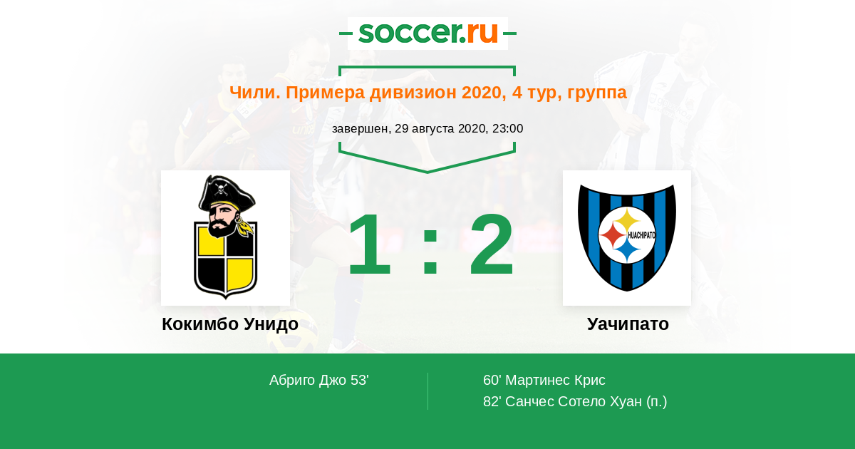 53' (1:0) Абриго Джо (10) (Фарфан Рубен (17))