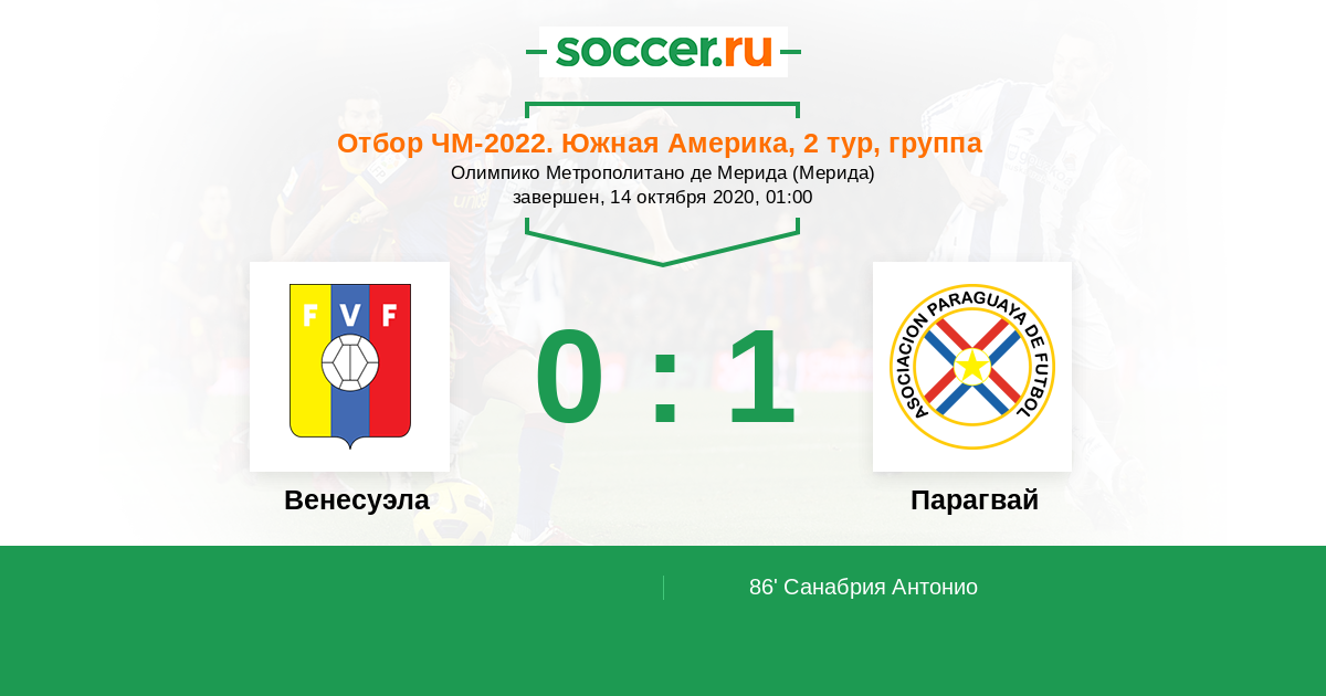 86' (0:1) Санабрия Антонио (9)