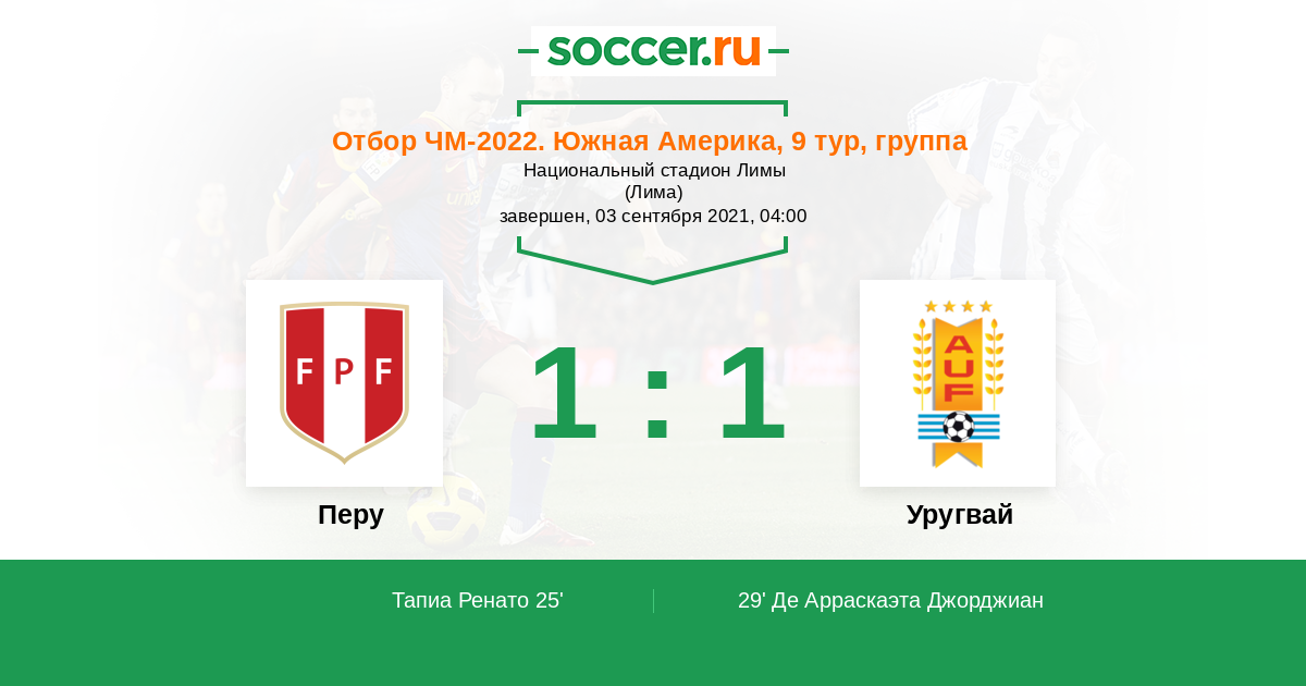 25' (1:0) Тапиа Ренато (13) (Герреро Паоло (9))