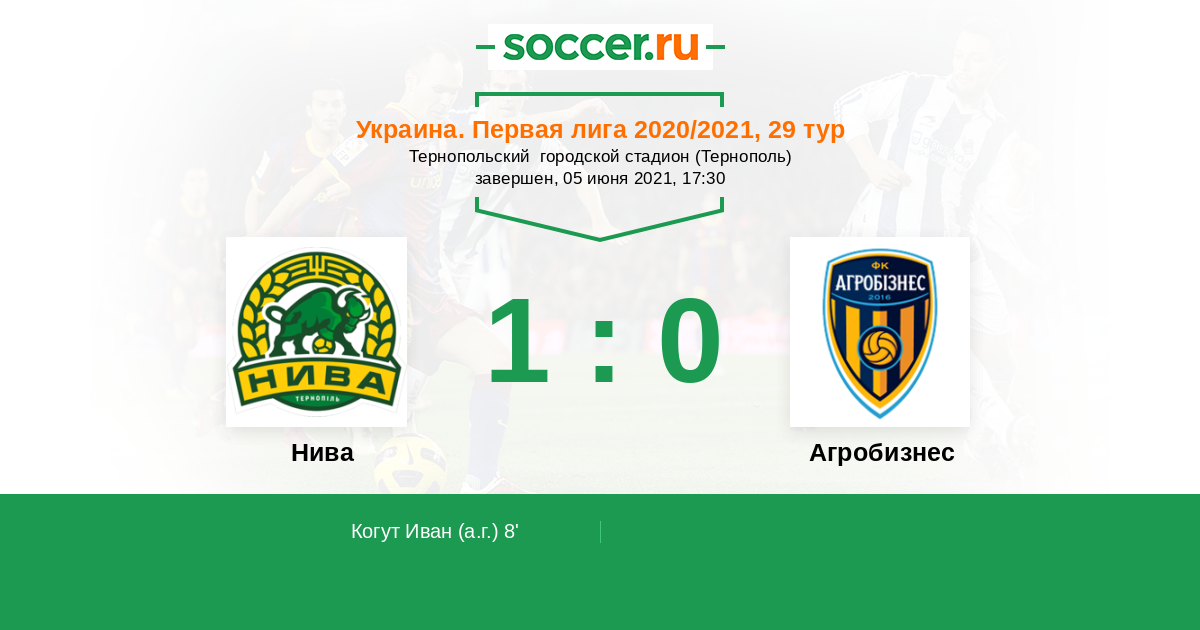 8' (1:0) Автогол Когут Иван