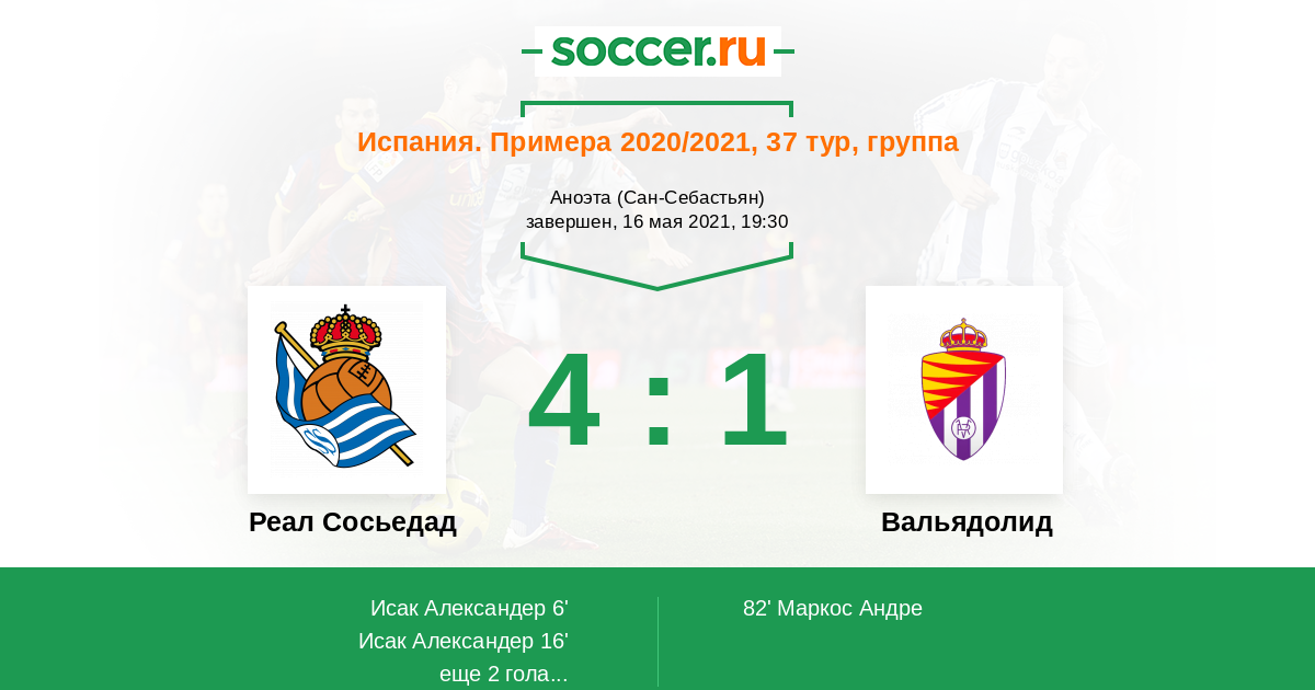 16' (2:0) Исак Александер (19) (Ойарсабаль Микель (10))
