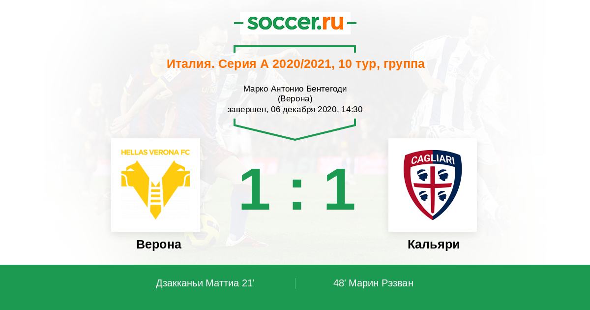 21' (1:0) Дзакканьи Маттиа (20) (Фараони Давиде (5))