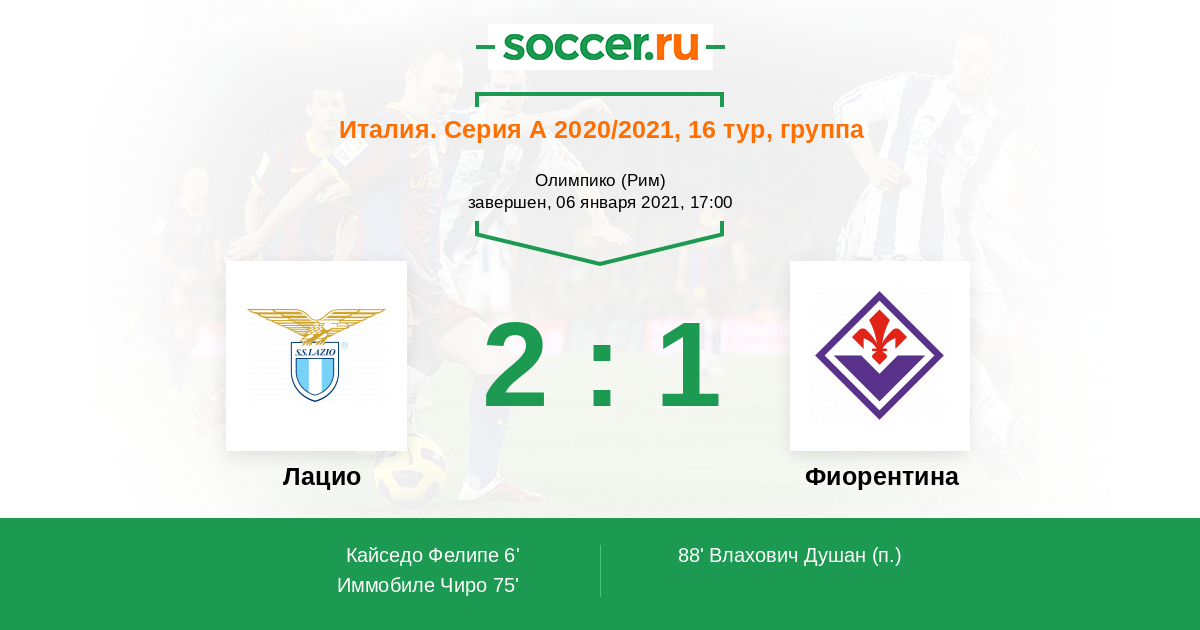 Лацио и болельщиков с победой, уверен, что такие тут есть!!! Столичные орлы уже на протяжении 8 матчей, как минимум, не проигрывают Фиорентине. И уже третий матч подряд выигрывает у фиалок. Римские команды в этом сезоне кажется поменялись местами. Лацио что-то очень слабо в этом сезоне идёт. Очевидно, что команду не хватает на два-три фронта. Как только заканчивается еврокубковый отрезок, так Лацио начинает показывать нормальные результаты. Руководству бы подумать и расширить скамейку запасных. Ведь тренер умный, опытный, только точечных трансферов не хватает, чтоб в стабильности добавить.