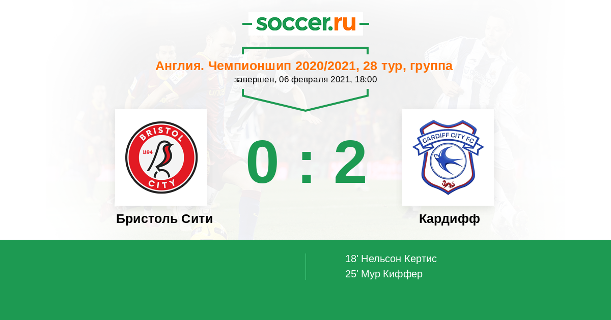 18' (0:1) Нельсон Кертис (16) (Уилсон Гарри (23))