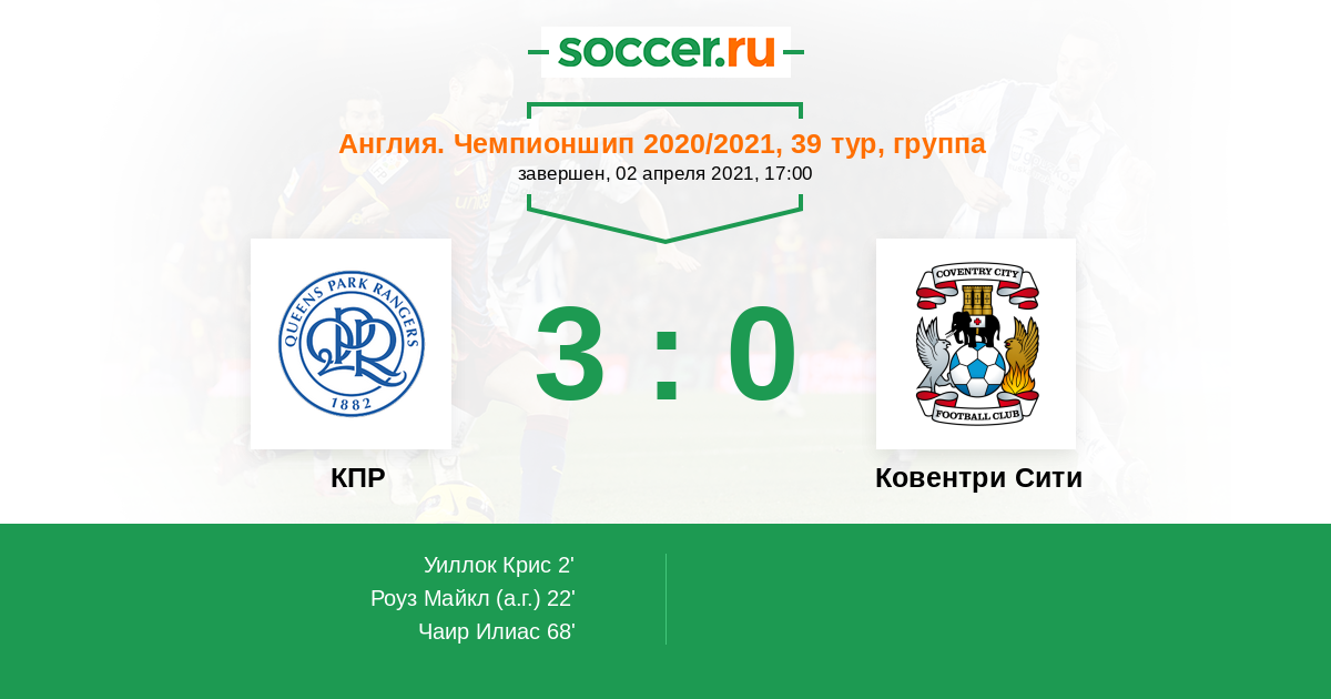 2' (1:0) Уиллок Крис (21) (Уоллас Ли (3))