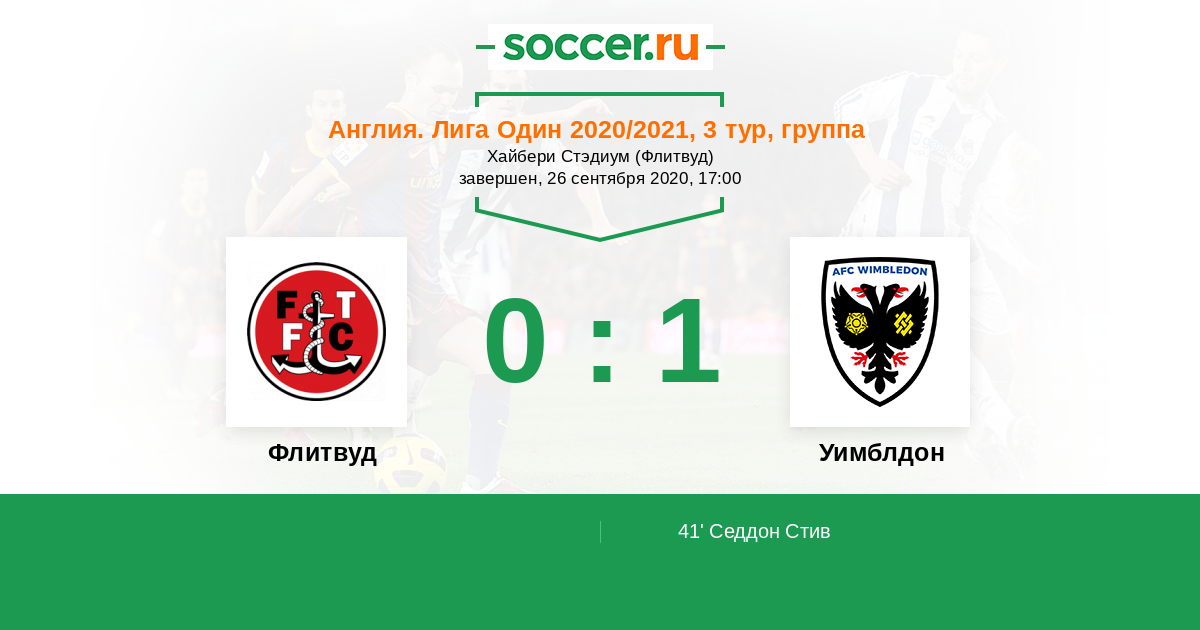 41' (0:1) Седдон Стив (42) (Пиготт Джо (39))
