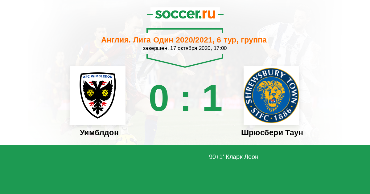90+1’ 0:1 Кларк Леон
