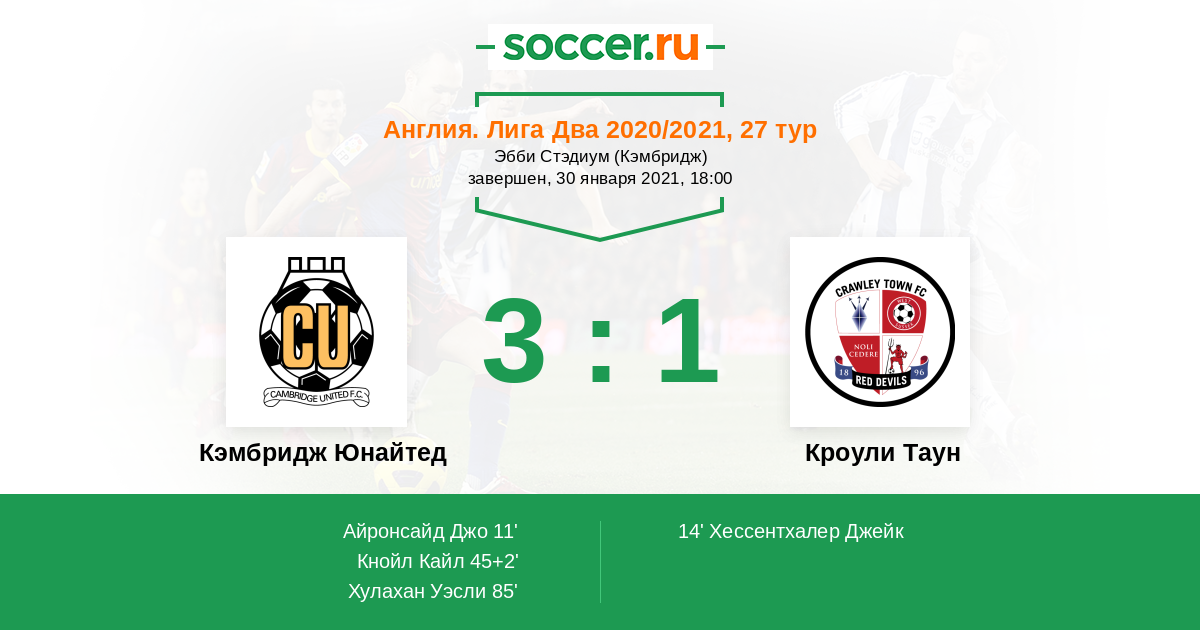 11' (1:0) Айронсайд Джо (20) (Хулахан Уэсли (14))