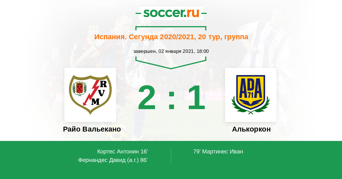 86' (2:1) Автогол Фернандес Давид (19)