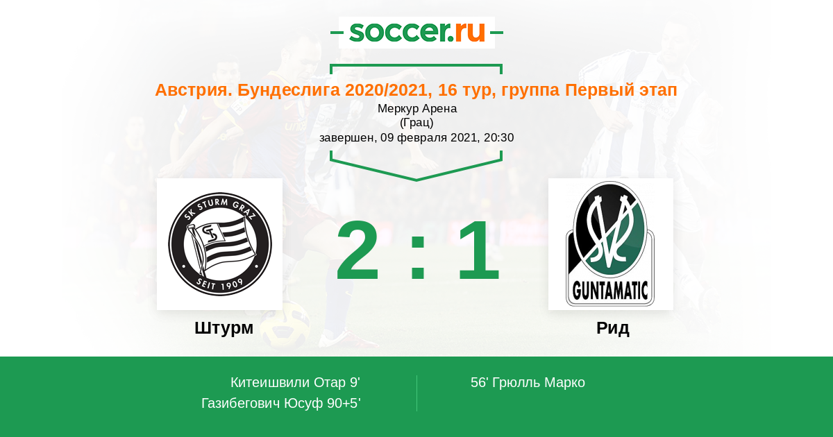 9' (1:0) Китеишвили Отар (10) (Хирлендер Штефан (25))
