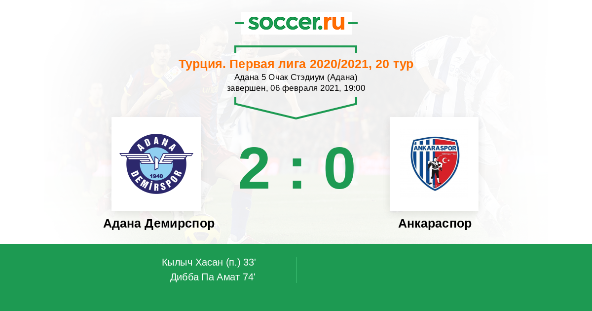 74' (2:0) Дибба Па Амат (14) (Курт Синан (8))