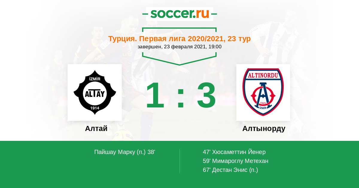 47' (1:1) Хюсаметтин Йенер (52) (Айдин Речеп (30))