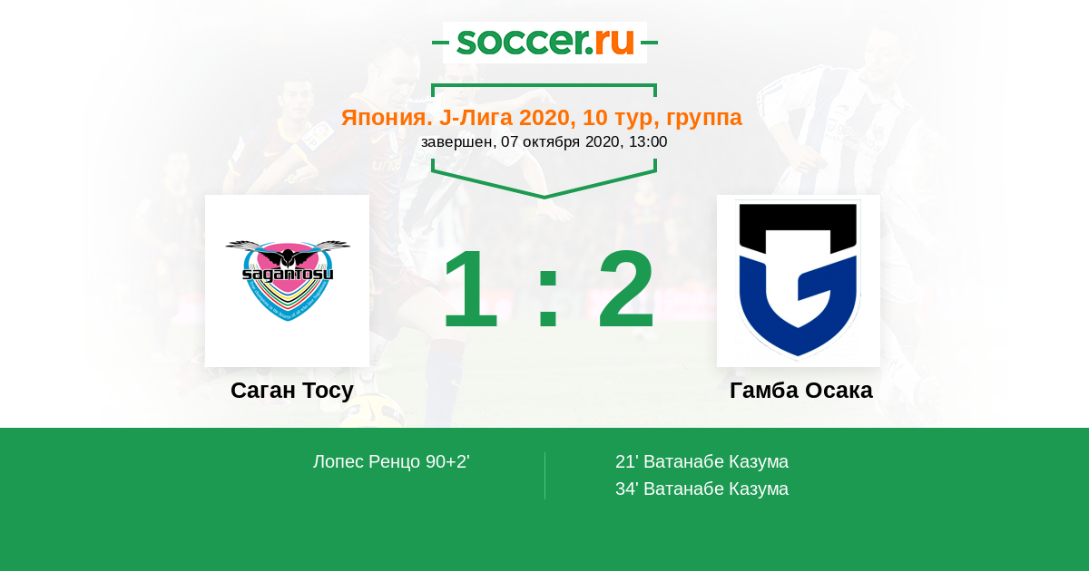 34' (0:2) Ватанабе Казума (39) (Адемилсон (9))