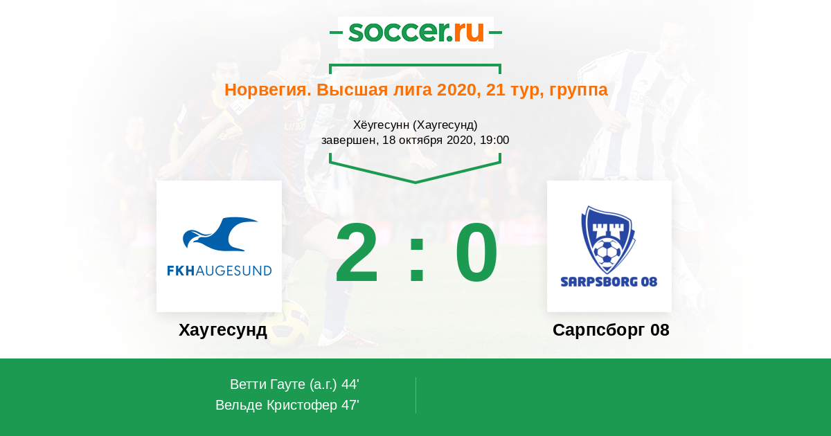 44' (1:0) Автогол Ветти Гауте (15)