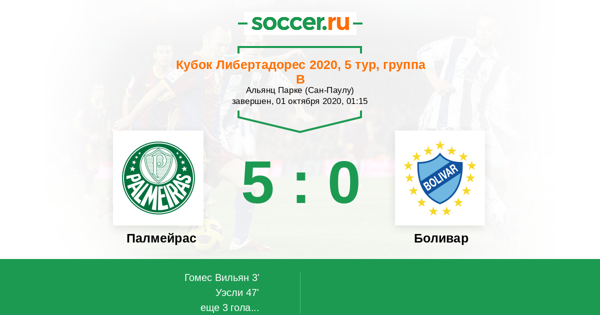 3' (1:0) Гомес Вильян (29) (Уэсли (21))