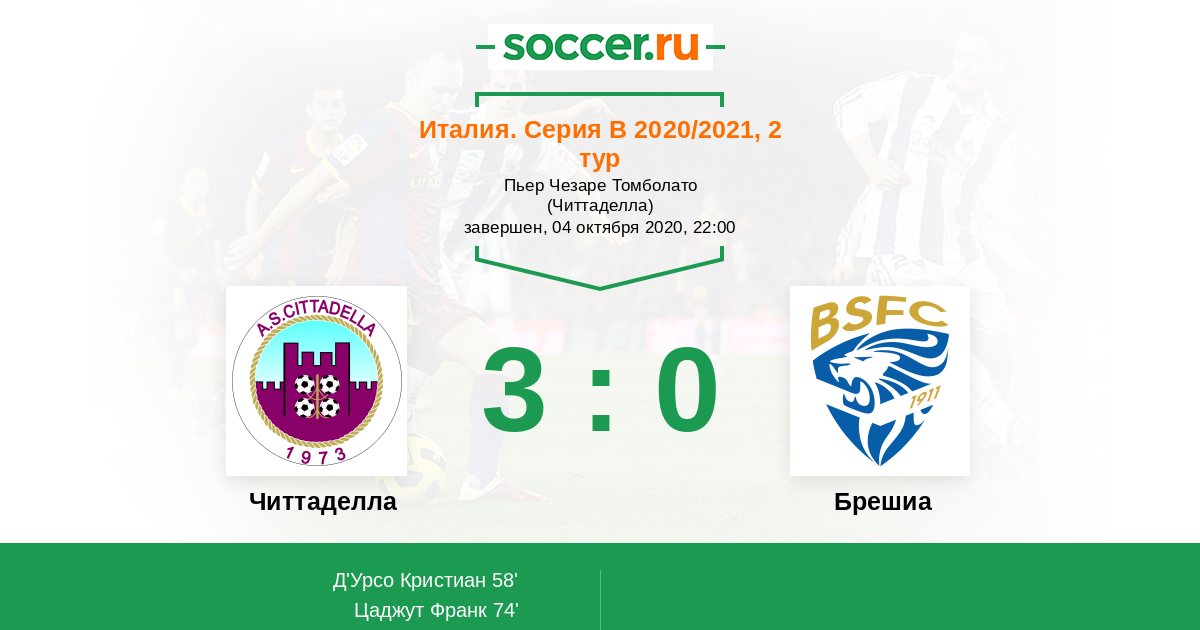 58' (1:0) Д'Урсо Кристиан (10) (Бранка Симоне (23))
