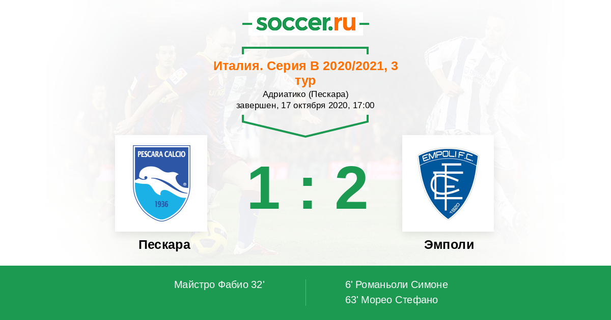 63' (1:2) Морео Стефано (10) (Фьямоцци Риккардо (20))