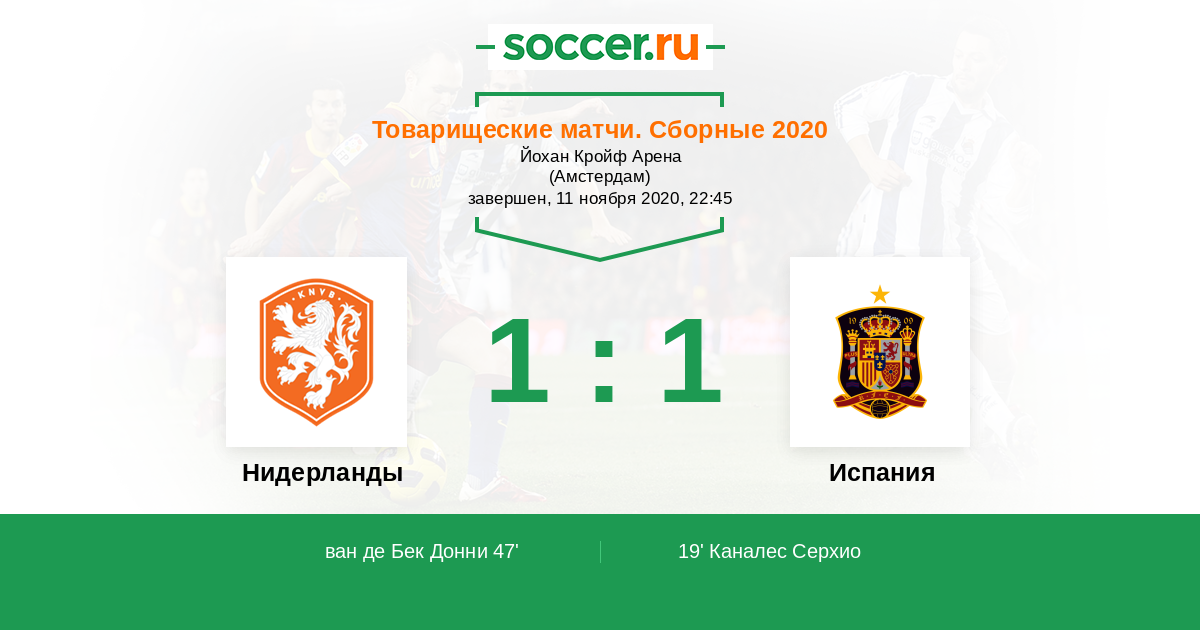 19' (0:1) Каналес Серхио (6) (Мората Альваро (7))
