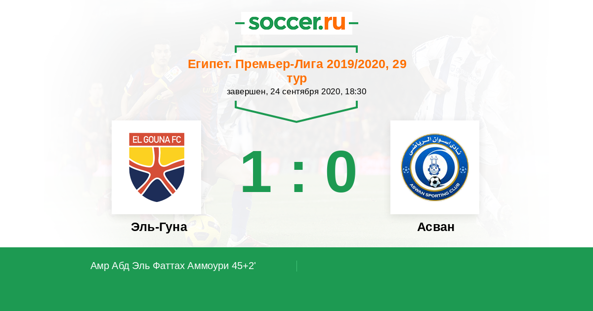 45+2' (1:0) Амр Абд Эль Фаттах Аммоури (19)