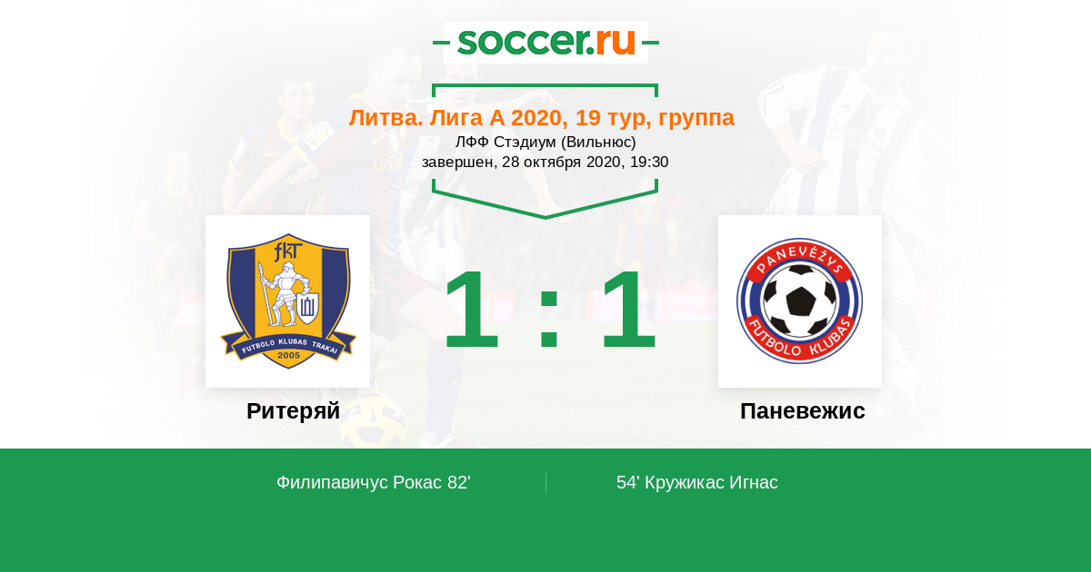 82' (1:1) Филипавичус Рокас (27) (Малжинскас Дейвидас (3))