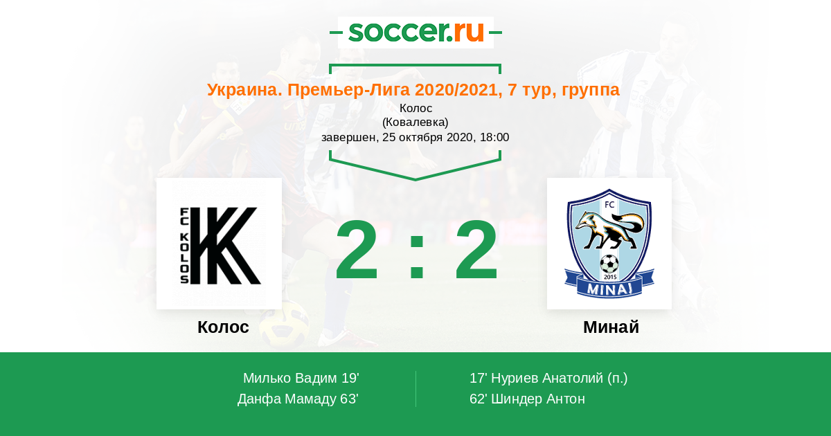 63' (2:2) Данфа Мамаду (94) (Исаенко Евгений (19))