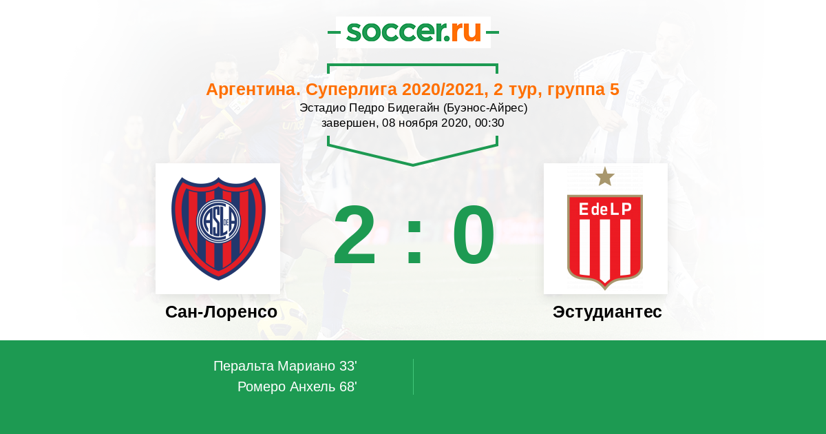 33' (1:0) Перальта Мариано (17) (Ромеро Оскар (10))