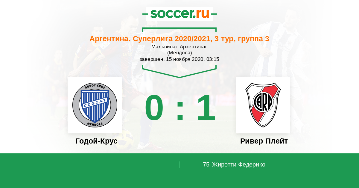 Гол75' (0:1) Жиротти Федерико (15) (Суарес Матиас (7))