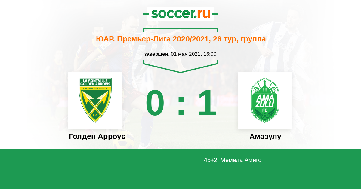 45+2' (0:1) Мемела Амиго (15) (Муленга Аугустин (30))