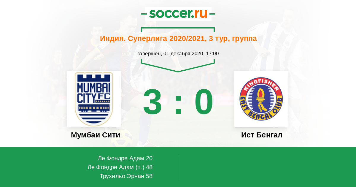 Матчи Индия. Суперлига 2020/2021