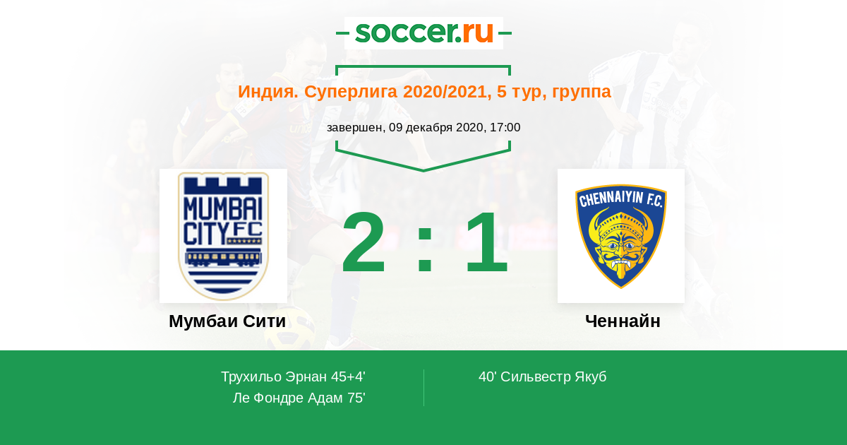 Матчи Индия. Суперлига 2020/2021