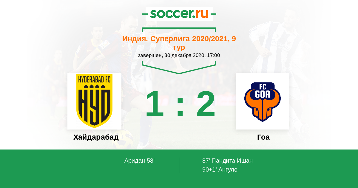 58' (1:0) Аридан (9) (Раи Ашиш (44))