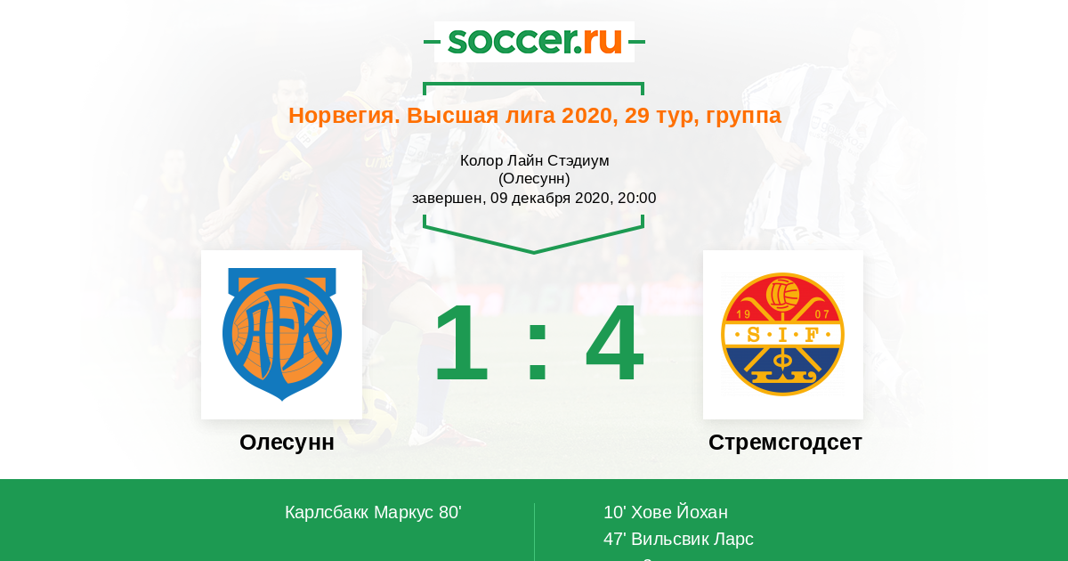 10' (0:1) Хове Йохан (8) (Сальвесен Ларс-Йорген (88))