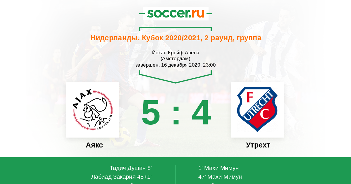 1' (0:1) Махи Мимун (19) (Ван дер Марел Марк (2))
