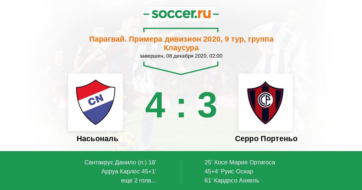 45+1' (2:1) Арруа Карлос (21) (Сантакрус Данило (10))