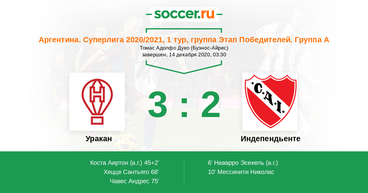 6' (0:1) Автогол Наварро Эсекель (14)