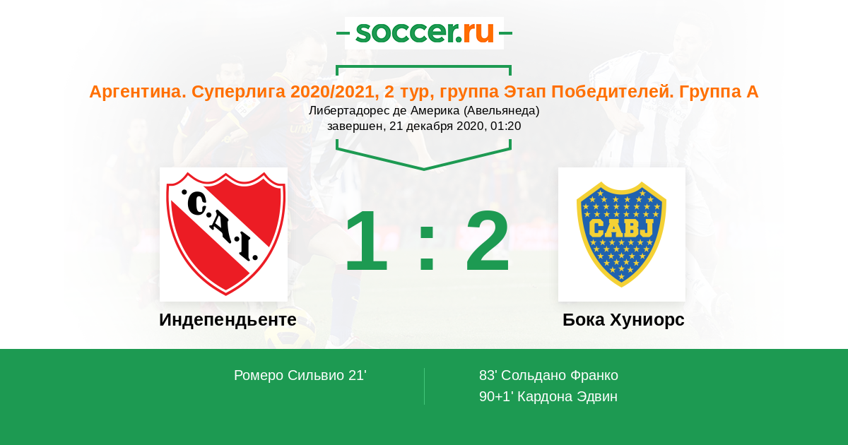 83' (1:1) Сольдано Франко (27) (Кардона Эдвин (8))