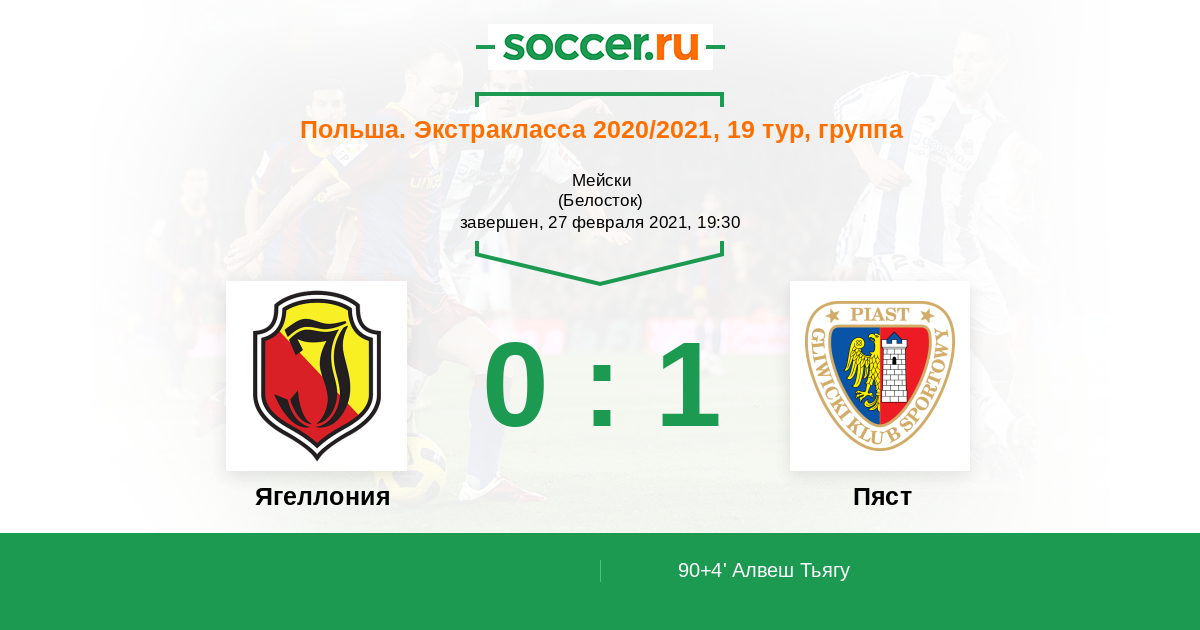 90+4' (0:1) Алвеш Тьягу (7) (Голубек Якуб (14))