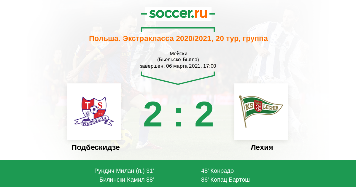 86' (1:2) Копац Бартош (5) (Петрзак Рафал (2))