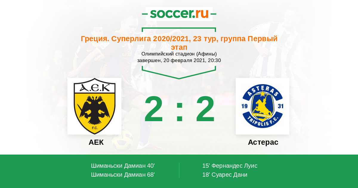 68' (2:2) Шиманьски Дамиан (4) (Гарсия Ливай (9))