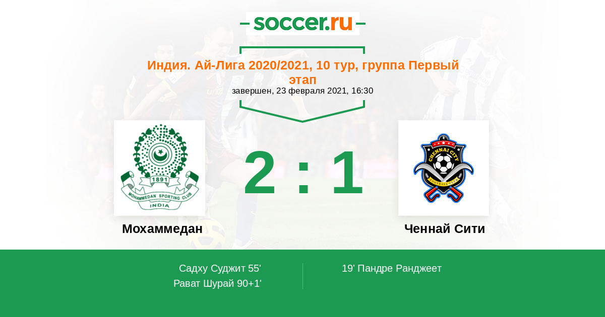 90+1' (2:1) Рават Шурай (36) (Саркар Тиртханкар (25))