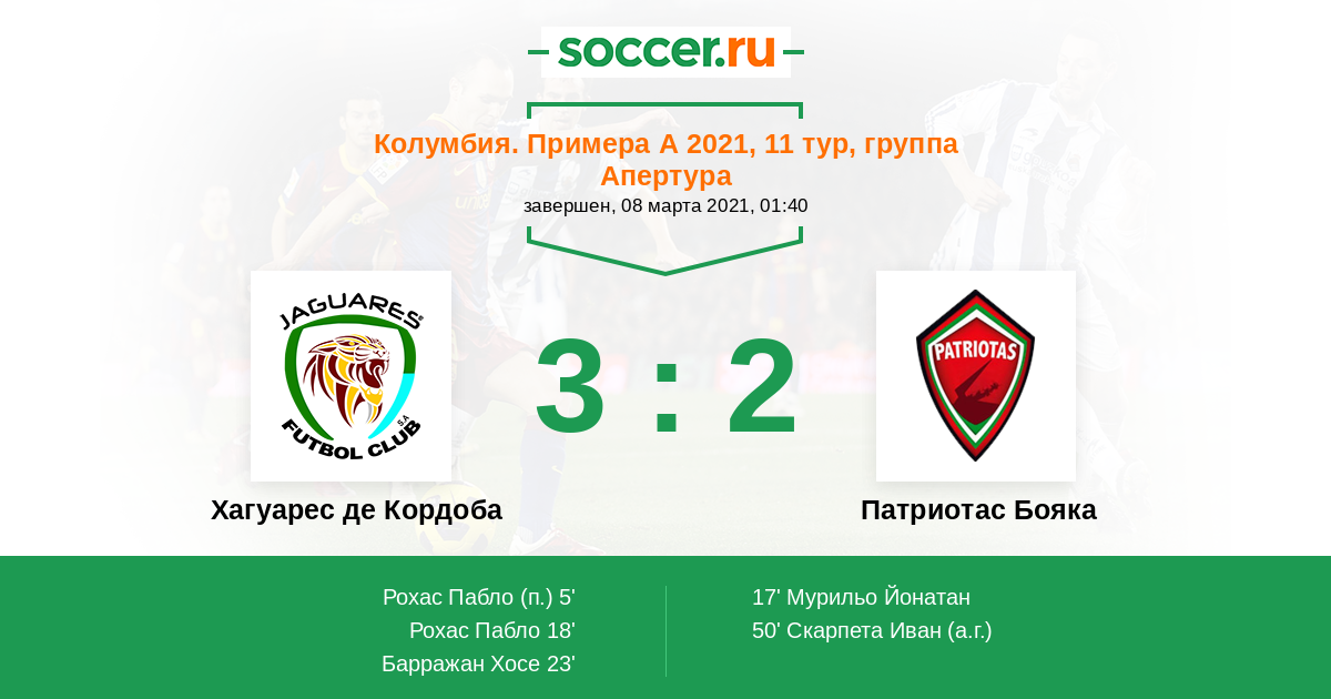 18' (2:1) Рохас Пабло (7) (Барражан Хосе (21))