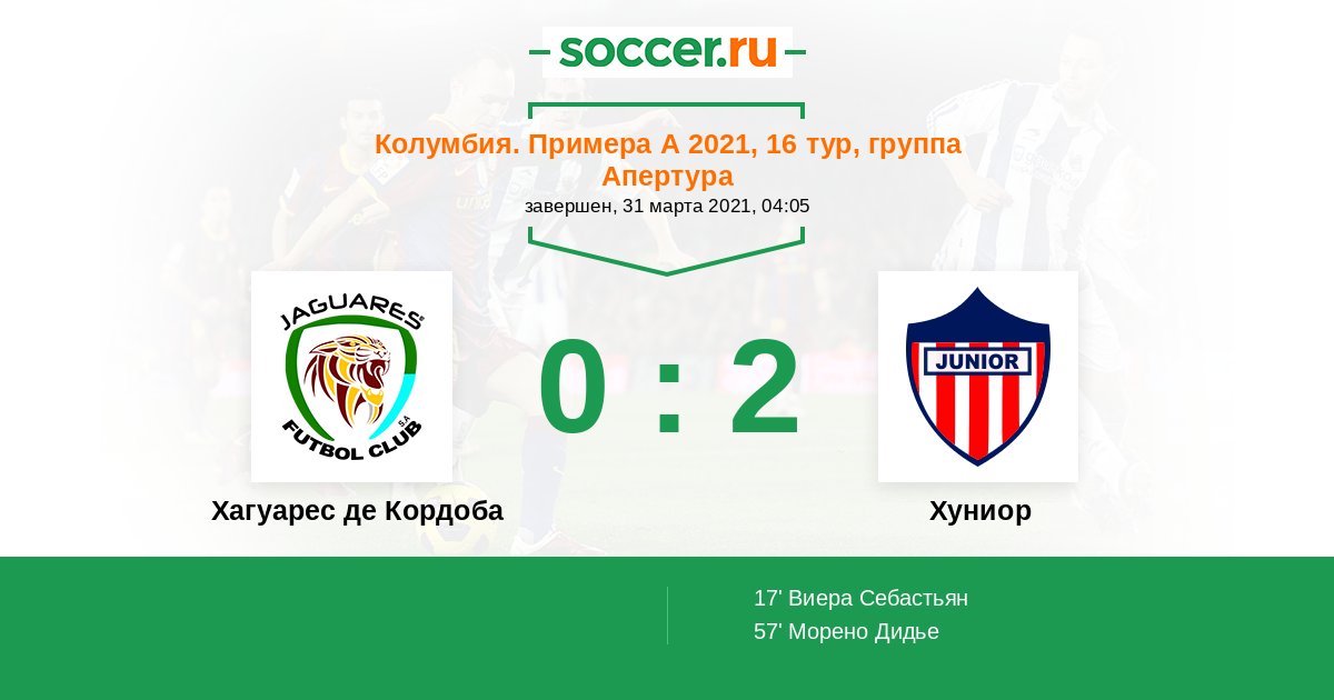 57' (0:2) Морено Дидье (6) (Гутьеррес Теофилио (29))