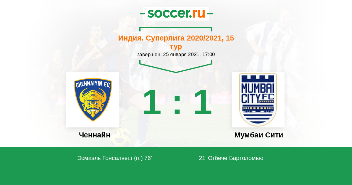 Матчи Индия. Суперлига 2020/2021
