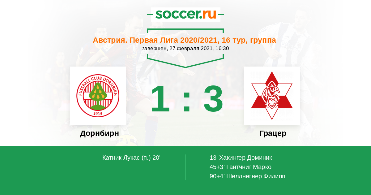 13' (0:1) Хакингер Доминик (10) (Зубак Петар (14))