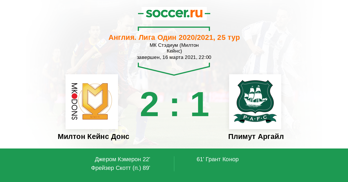 22' (1:0) Джером Кэмерон (35) (Соринола Мэттью (29))
