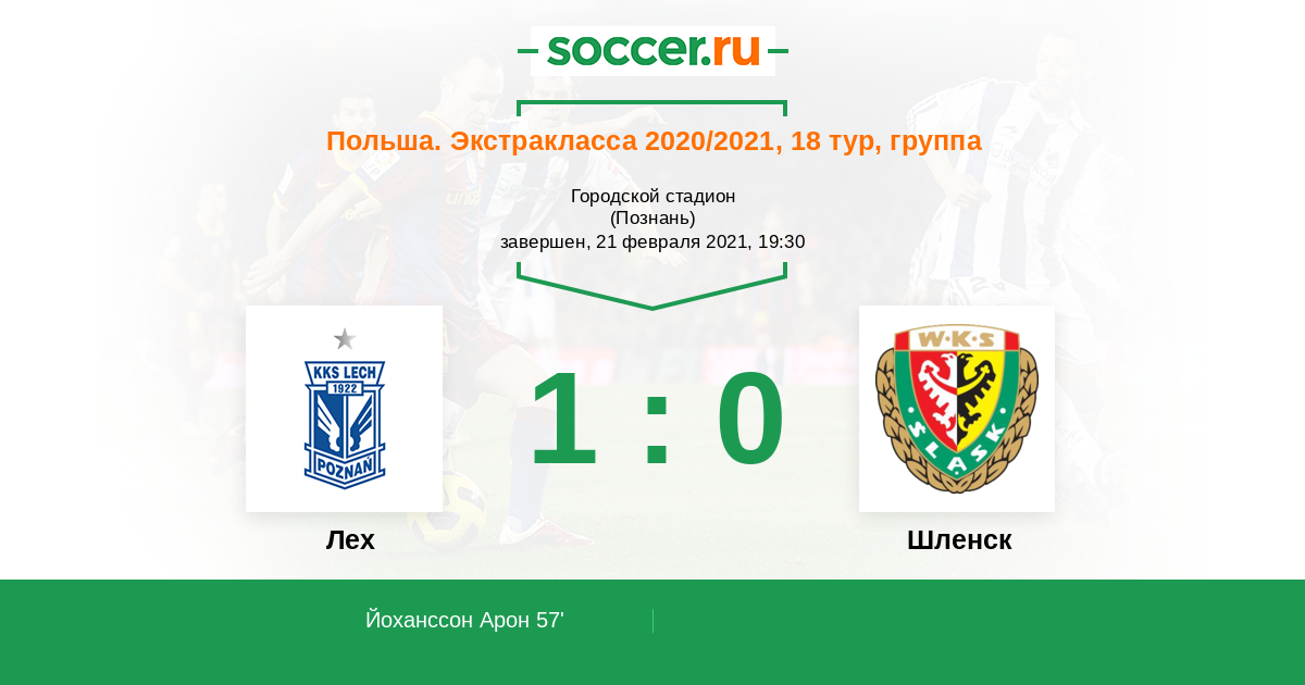 57' (1:0) Йоханссон Арон (20) (Сикора Ян (8))