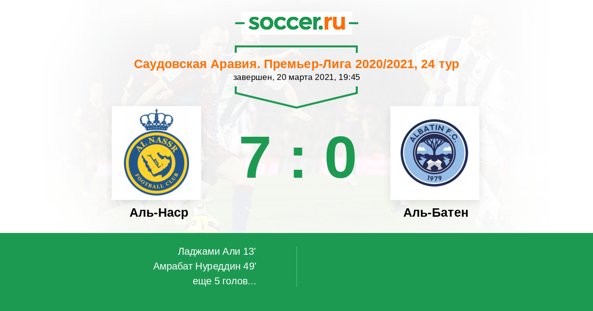 79' (7:0) Аль-Гамди Раед (70) (Хамдалла Абдерразак (9))