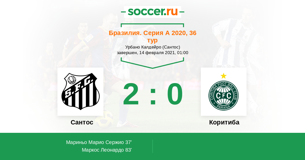 83' (2:0) Маркос Леонардо (36) (Лаэрсио (6))