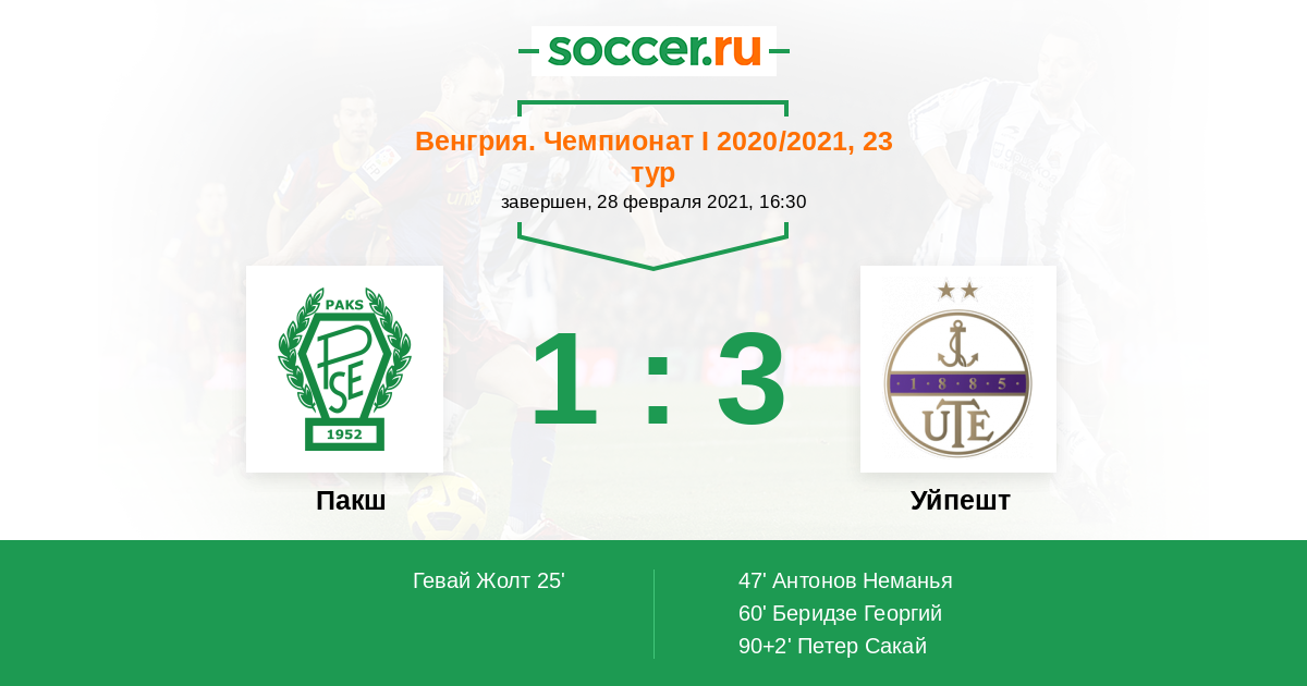 90+2' (1:3) Петер Сакай (55)